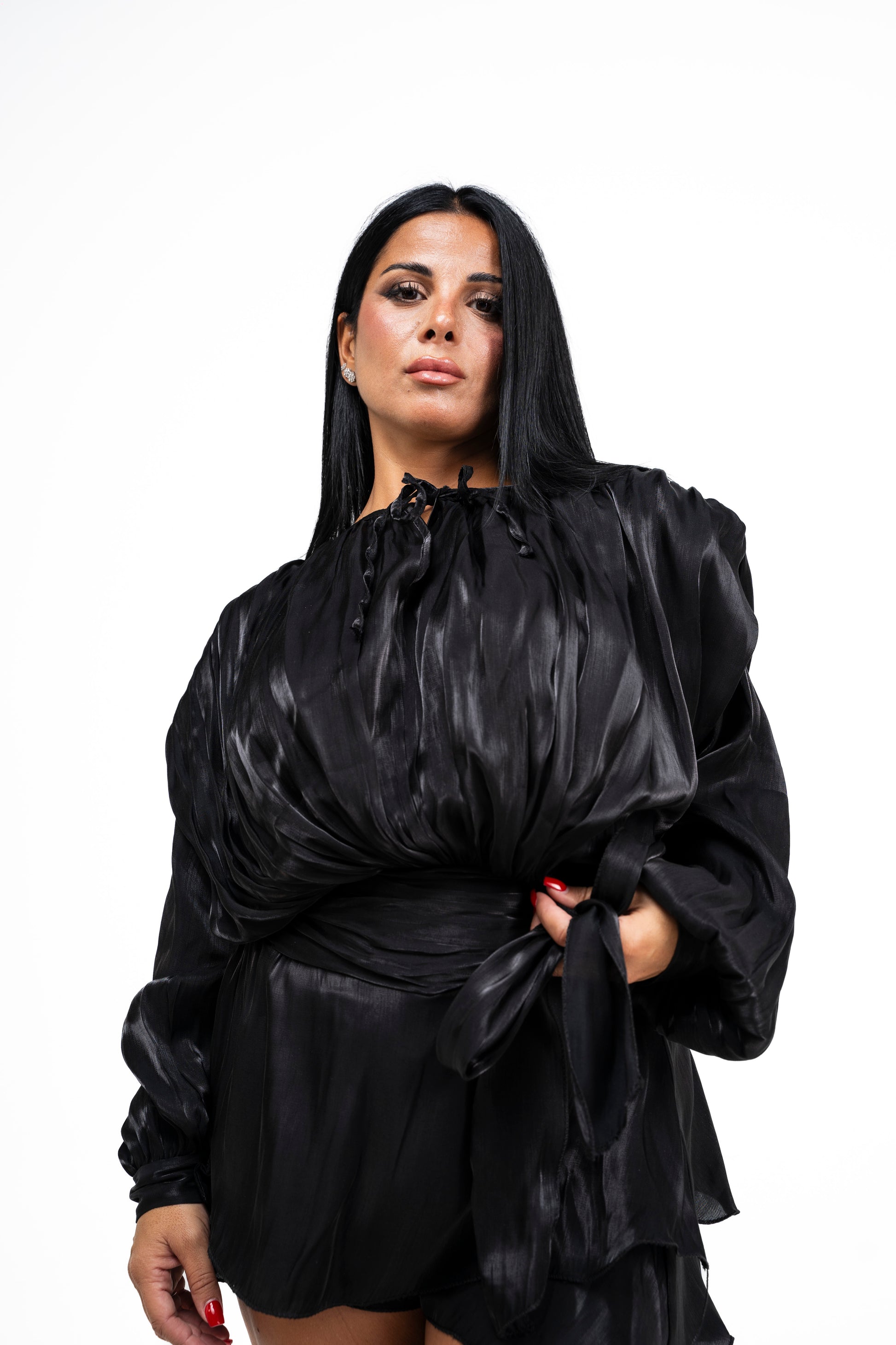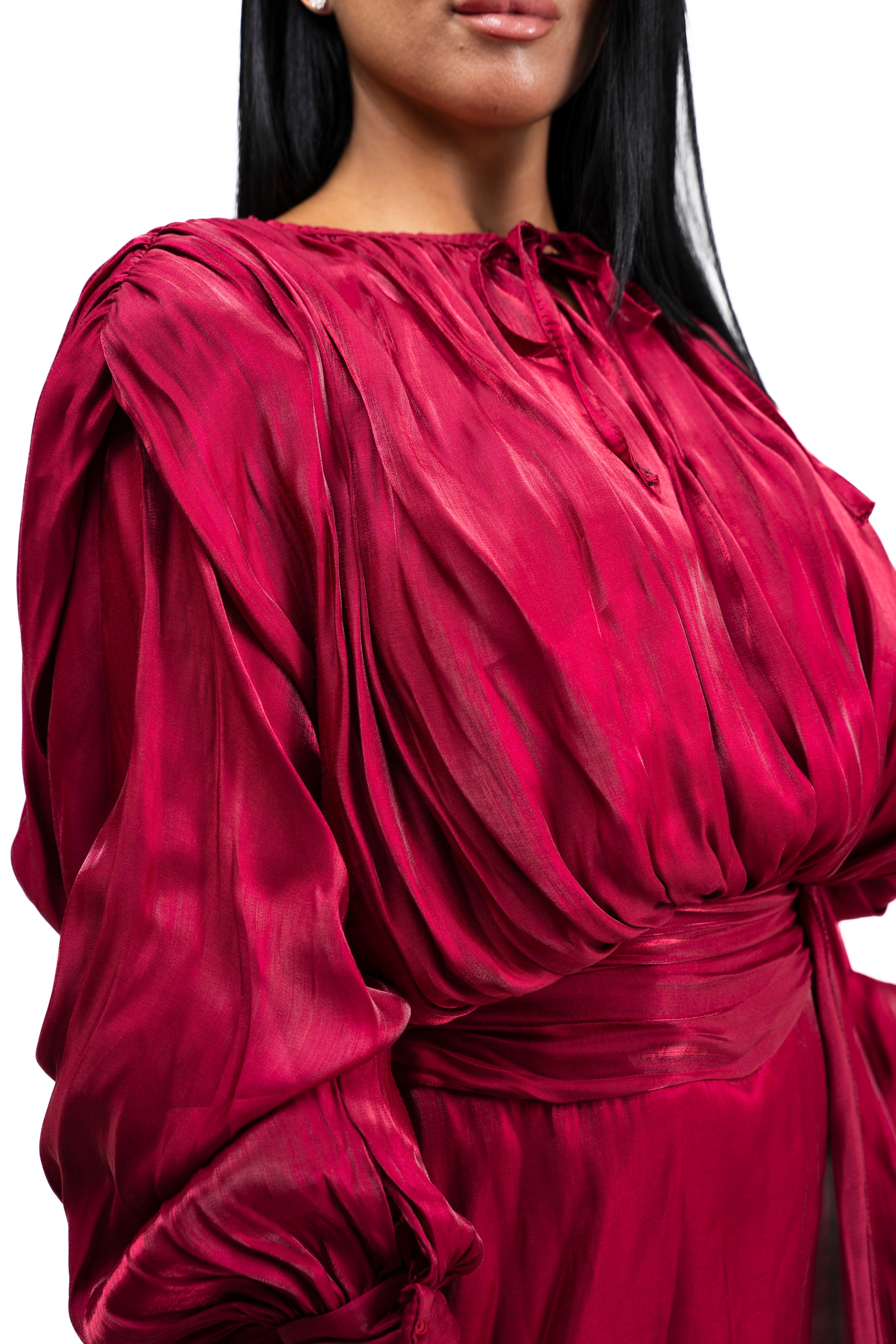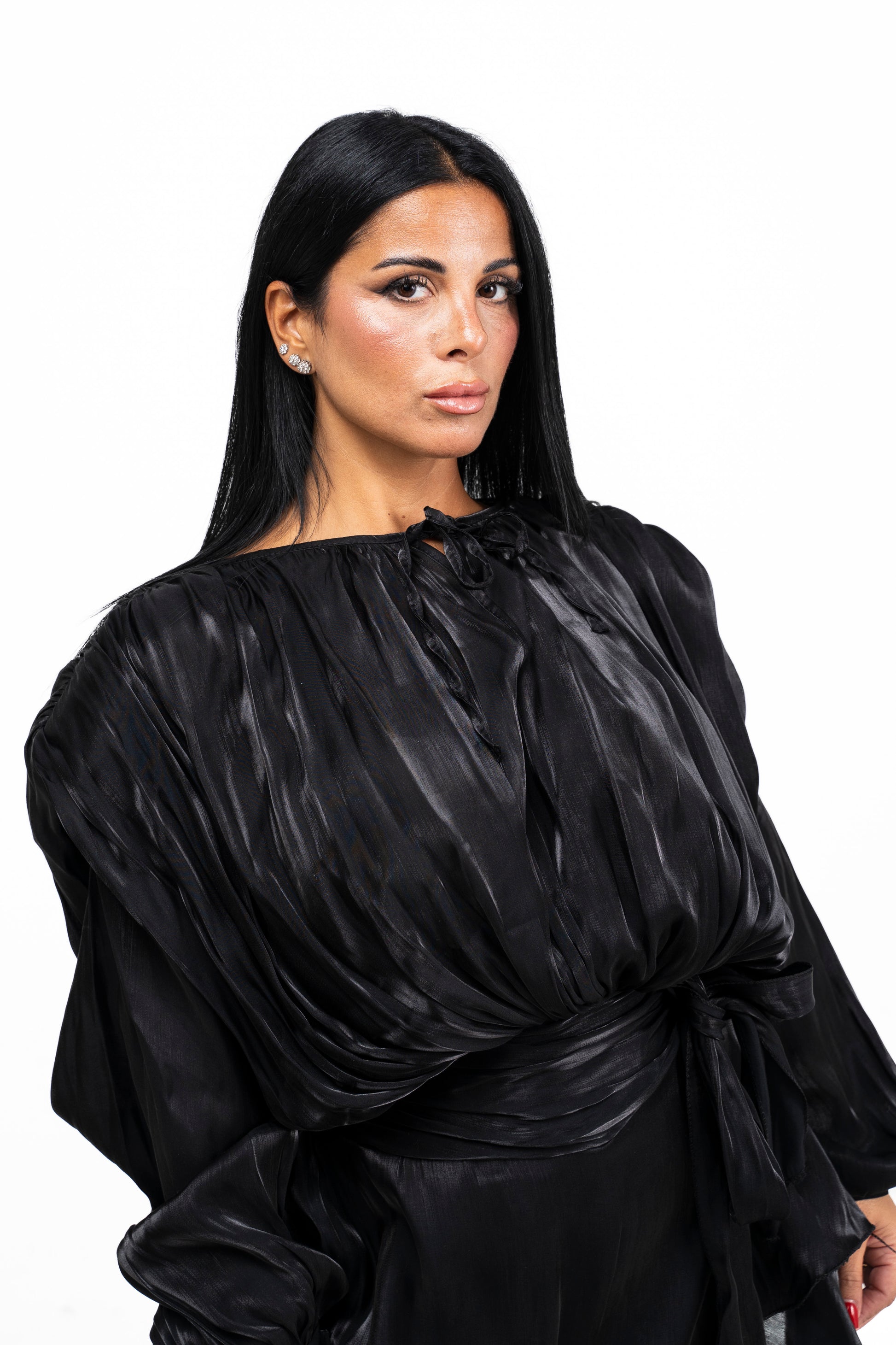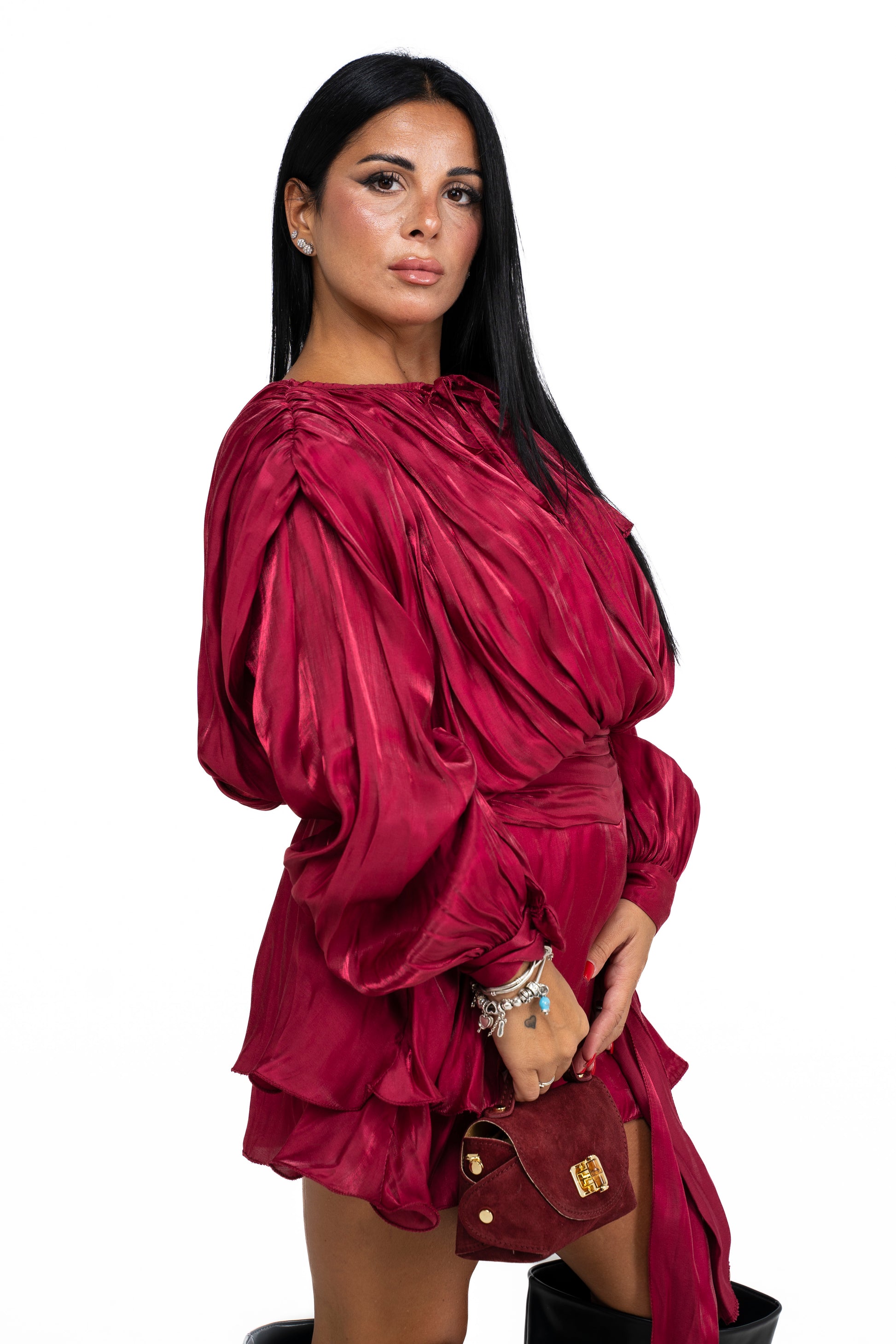 abito in seta con spalline rigide