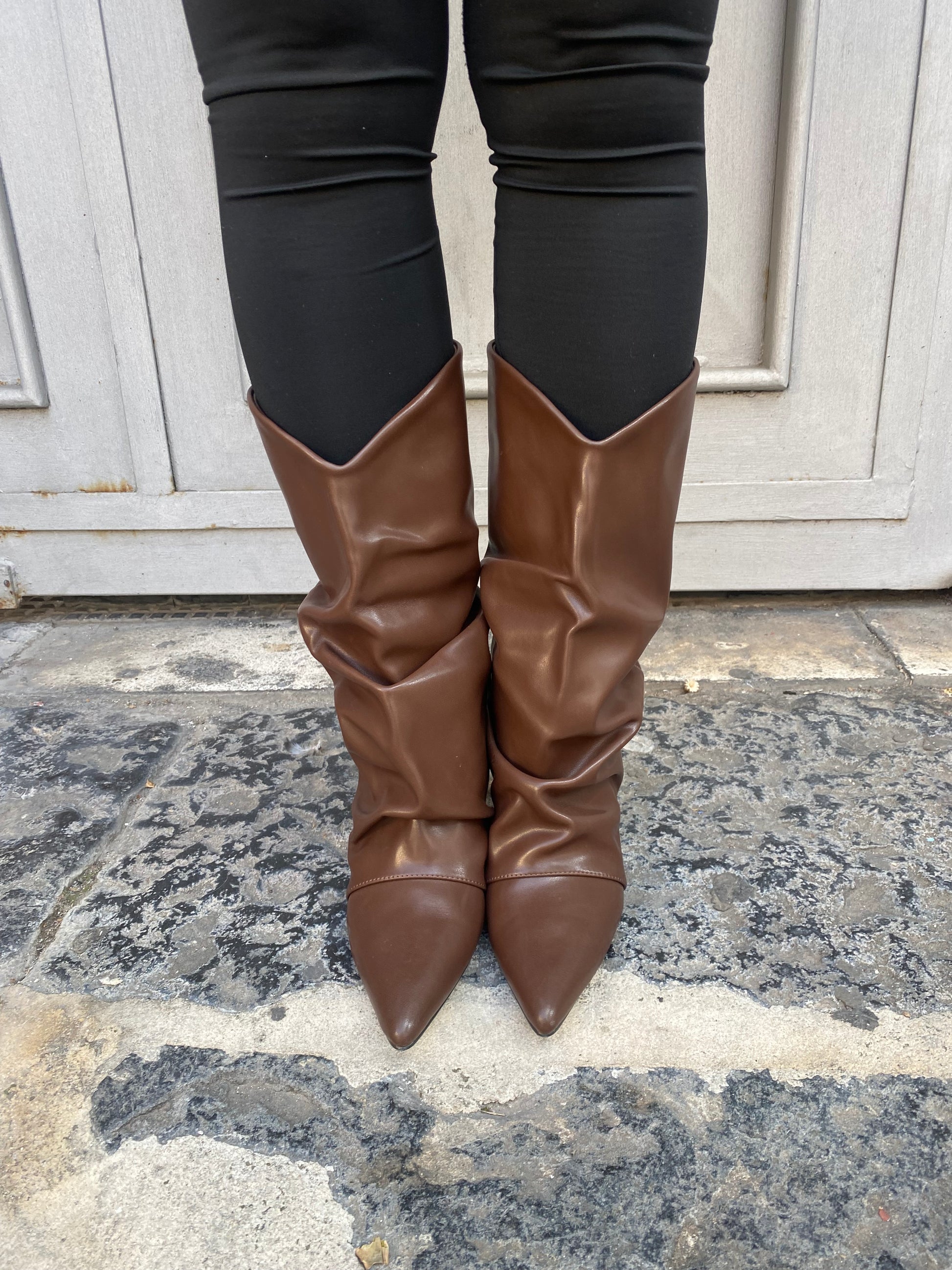 Stivale in pelle con tacco medio a spillo