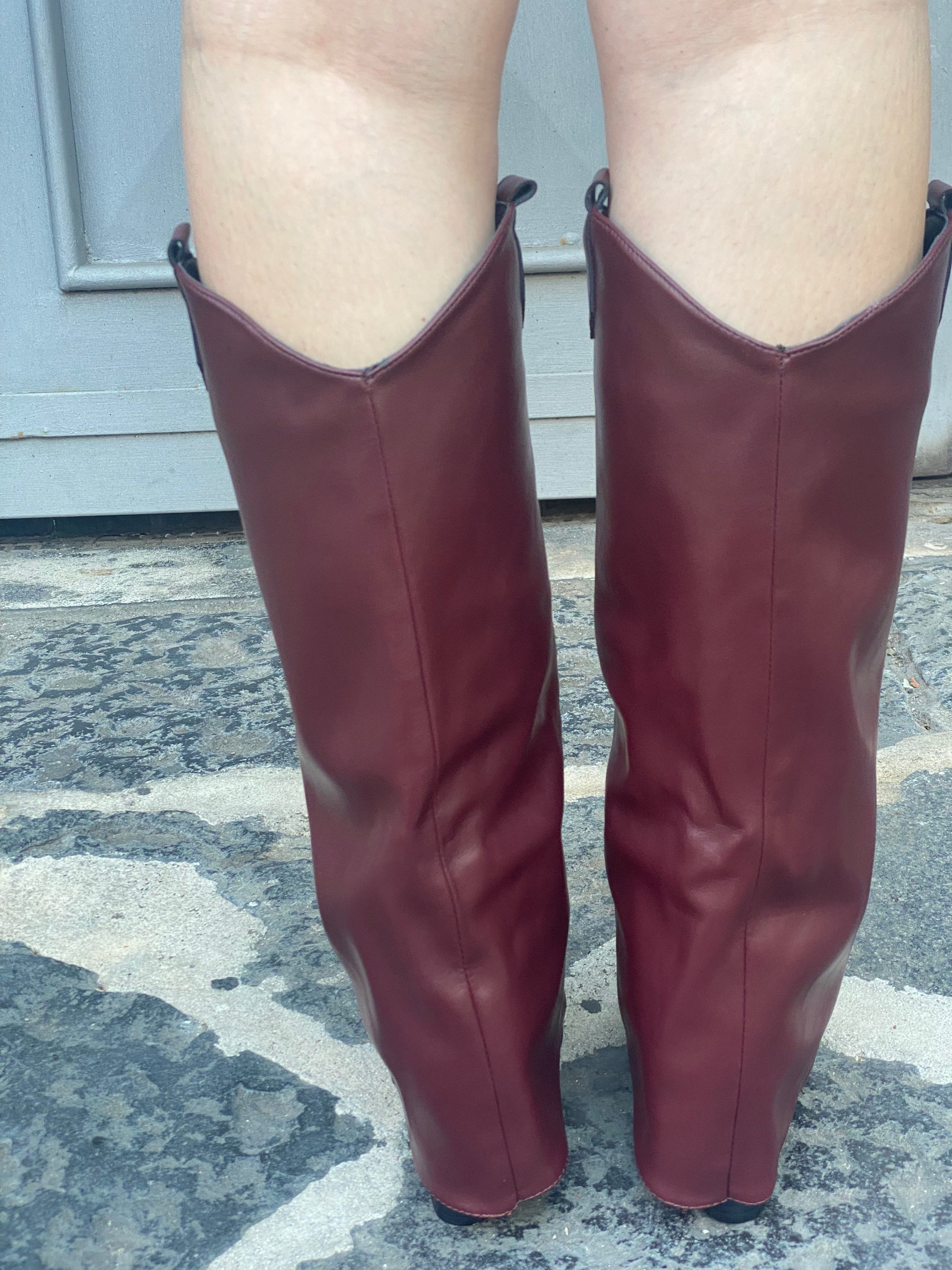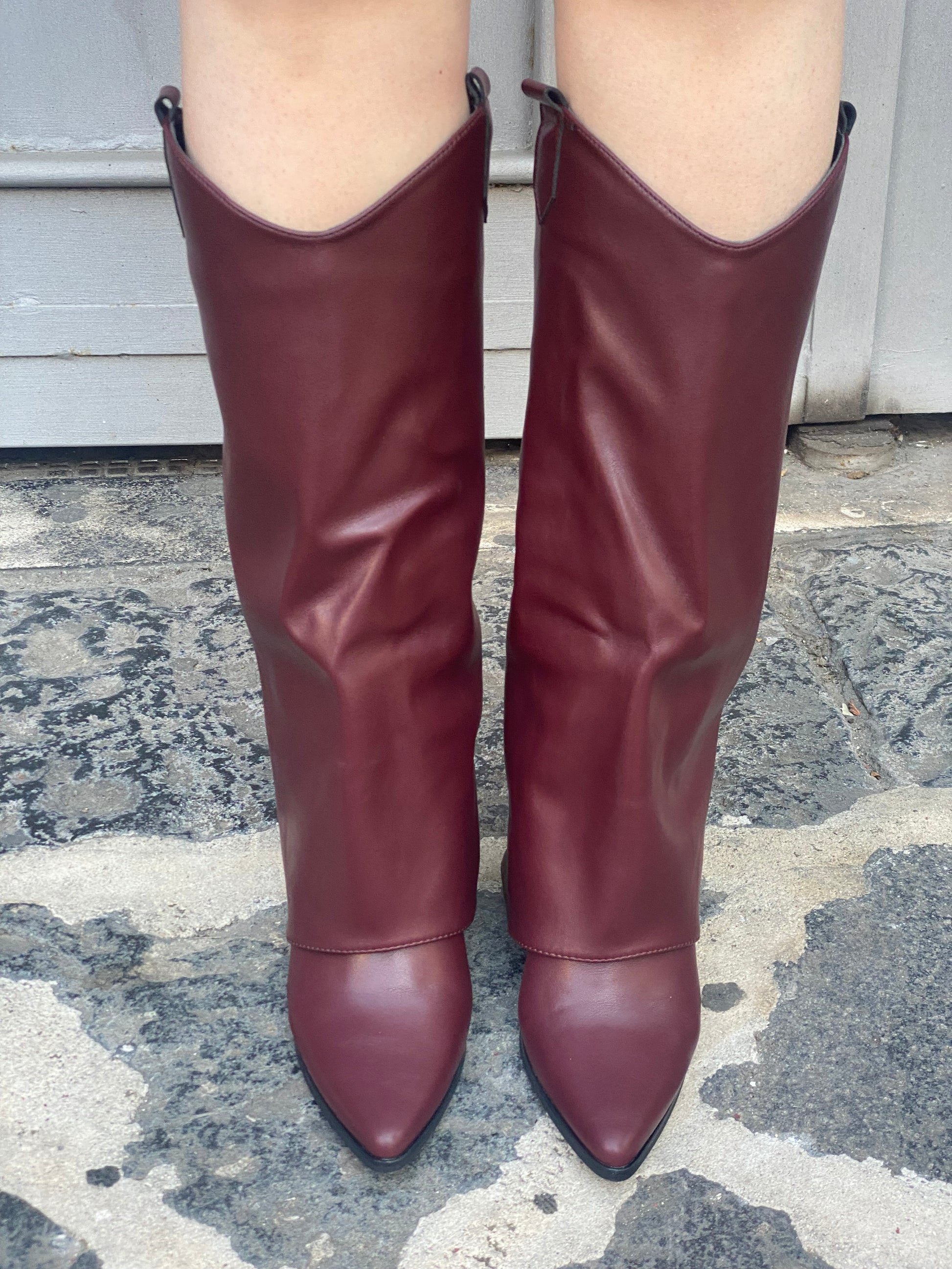 Stivale alto fino al ginocchio con zip interna e tacco quadrato medio.