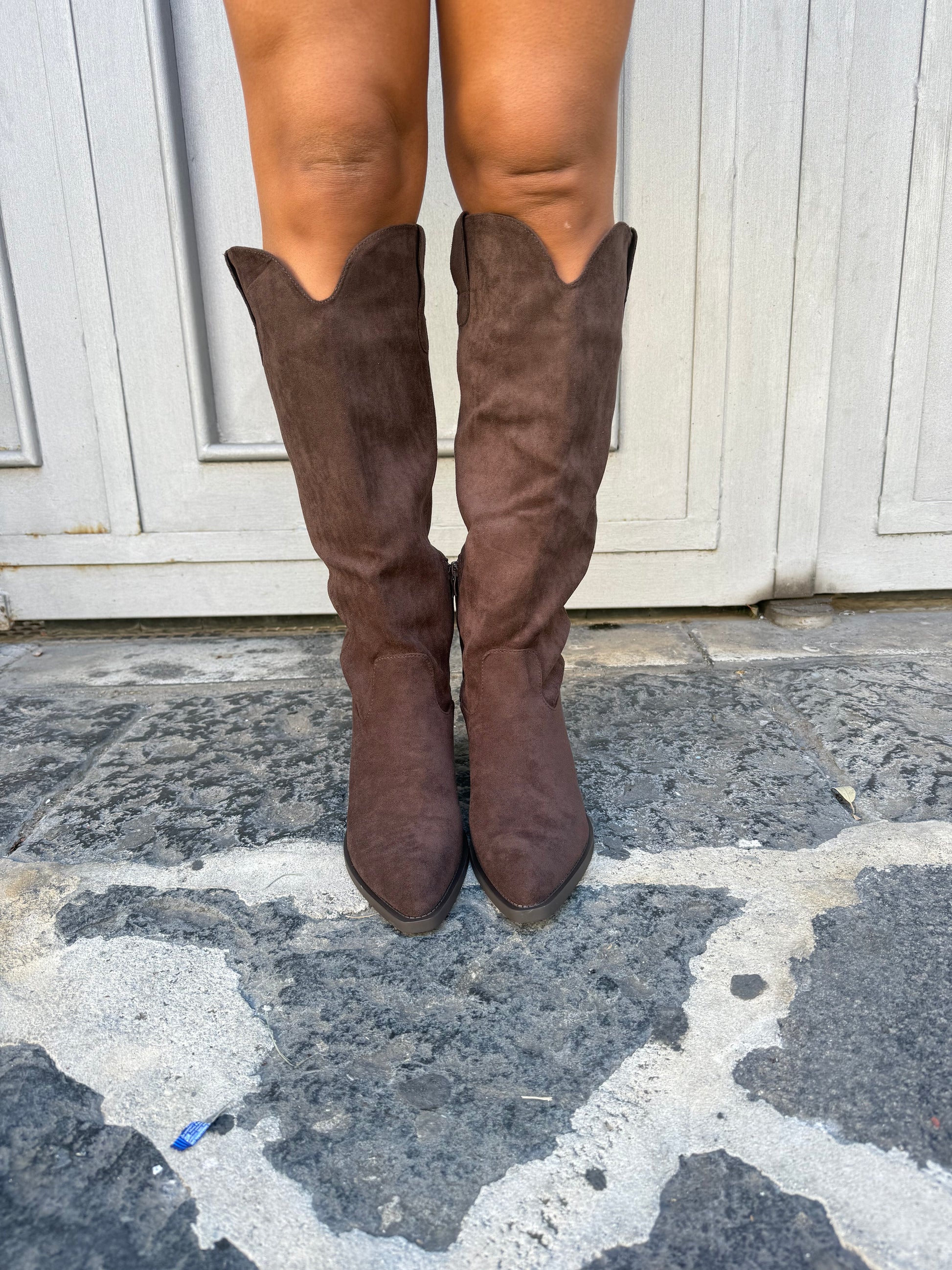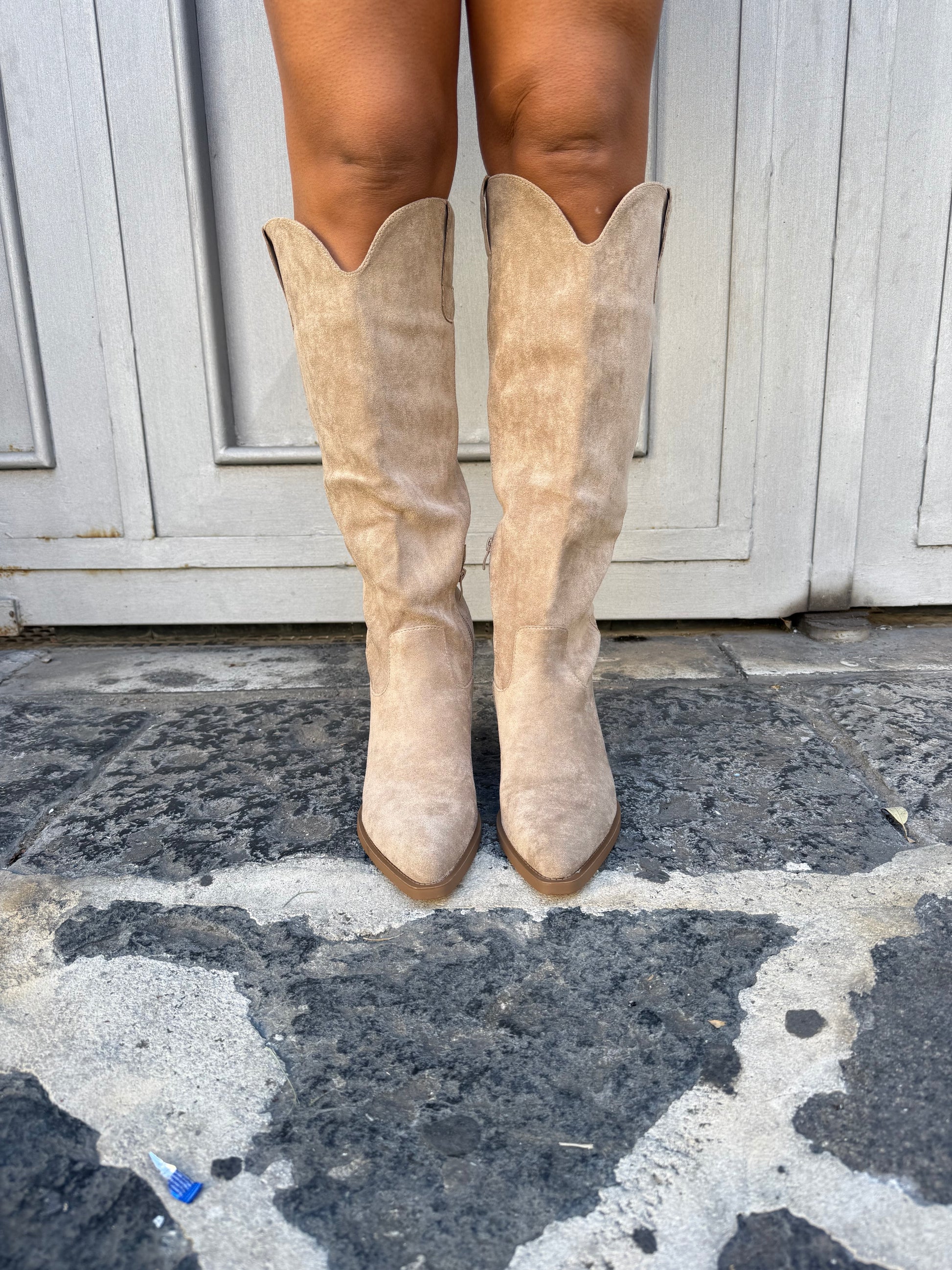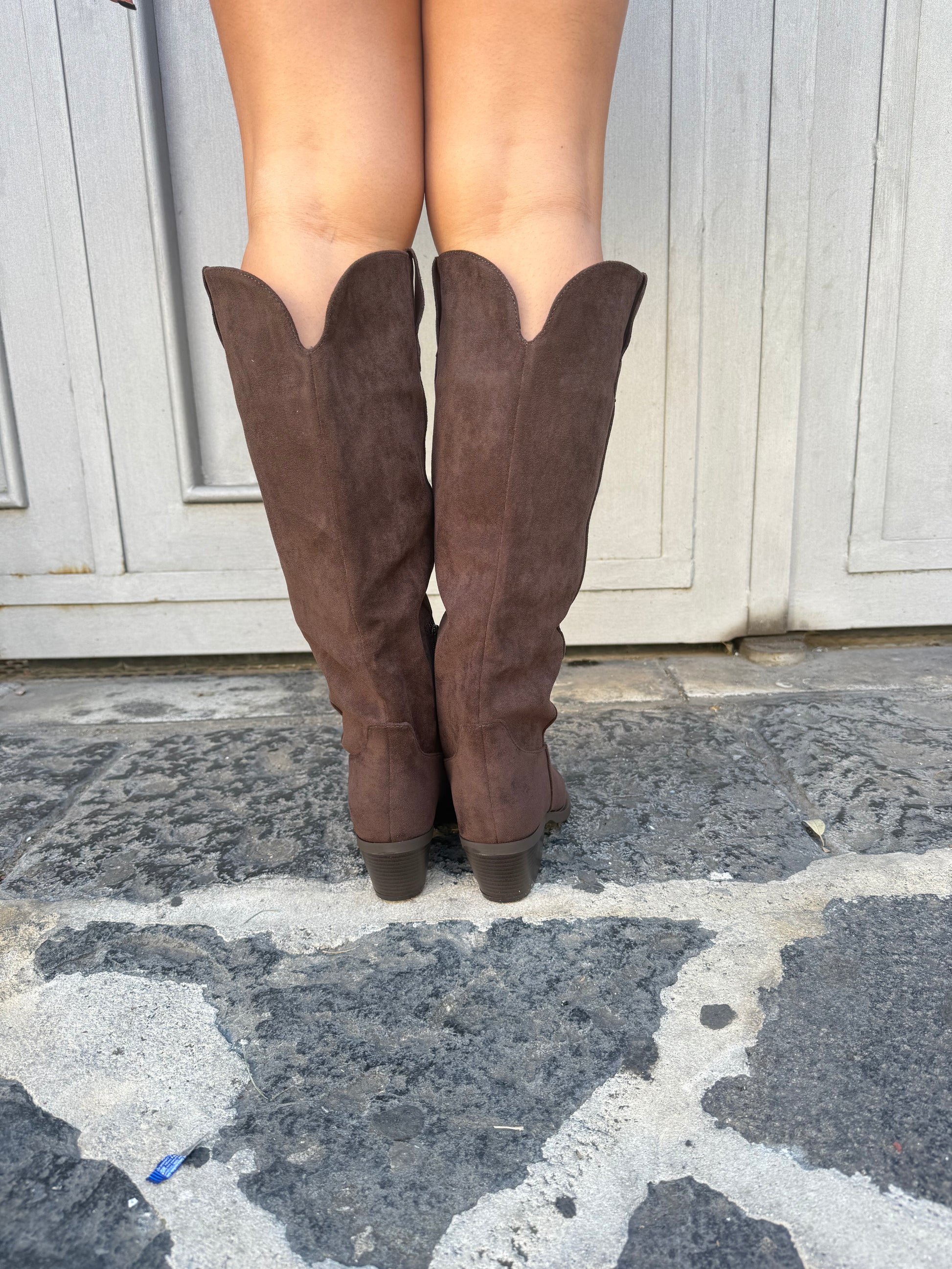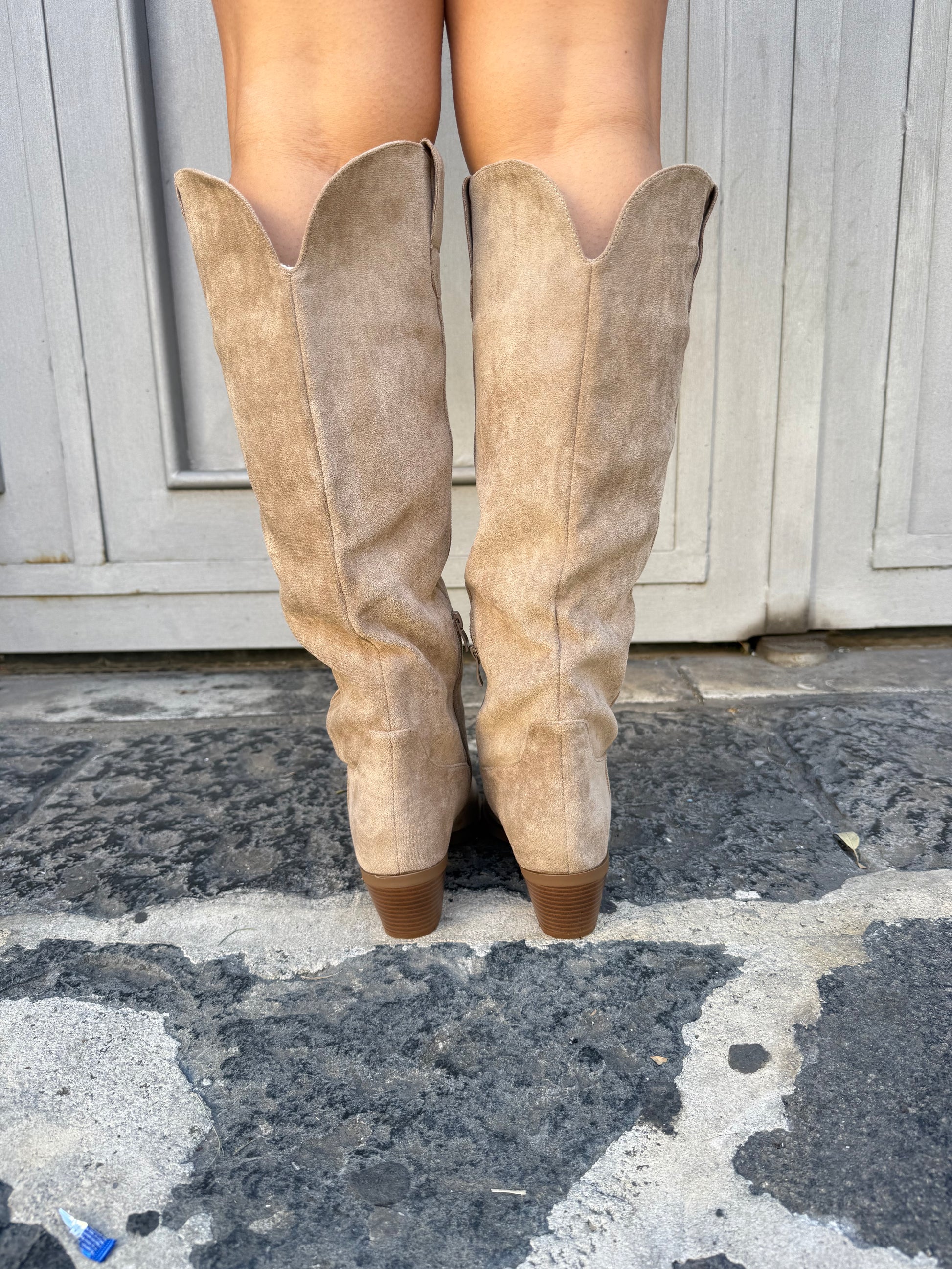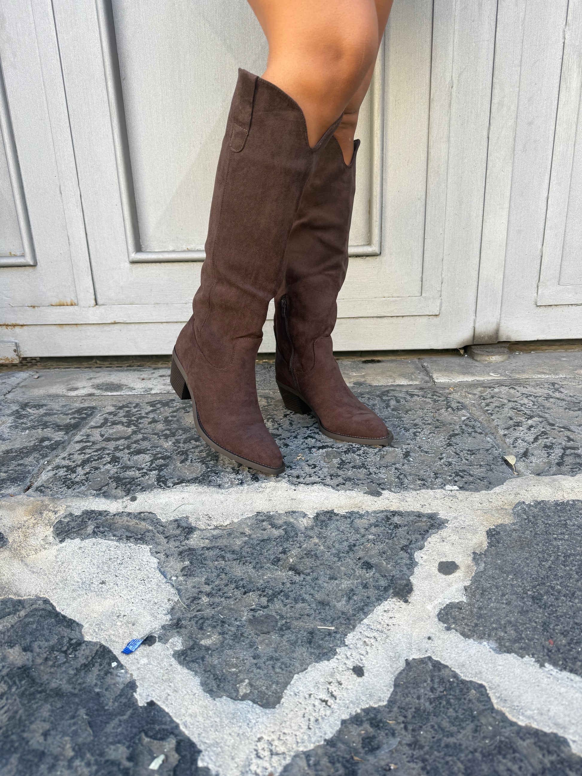 Stivale in camoscio alto al ginocchio con tacco quadrato comodo