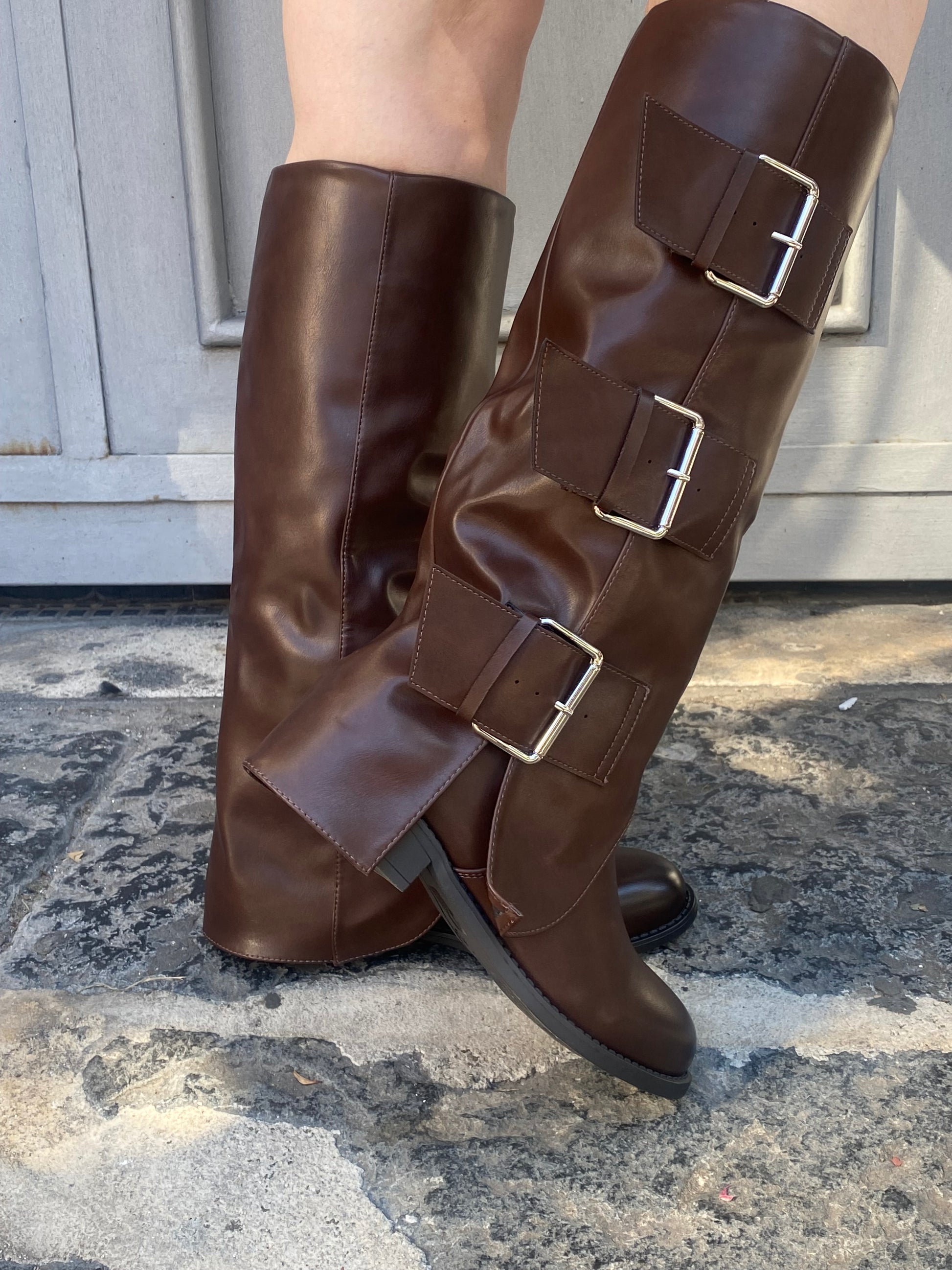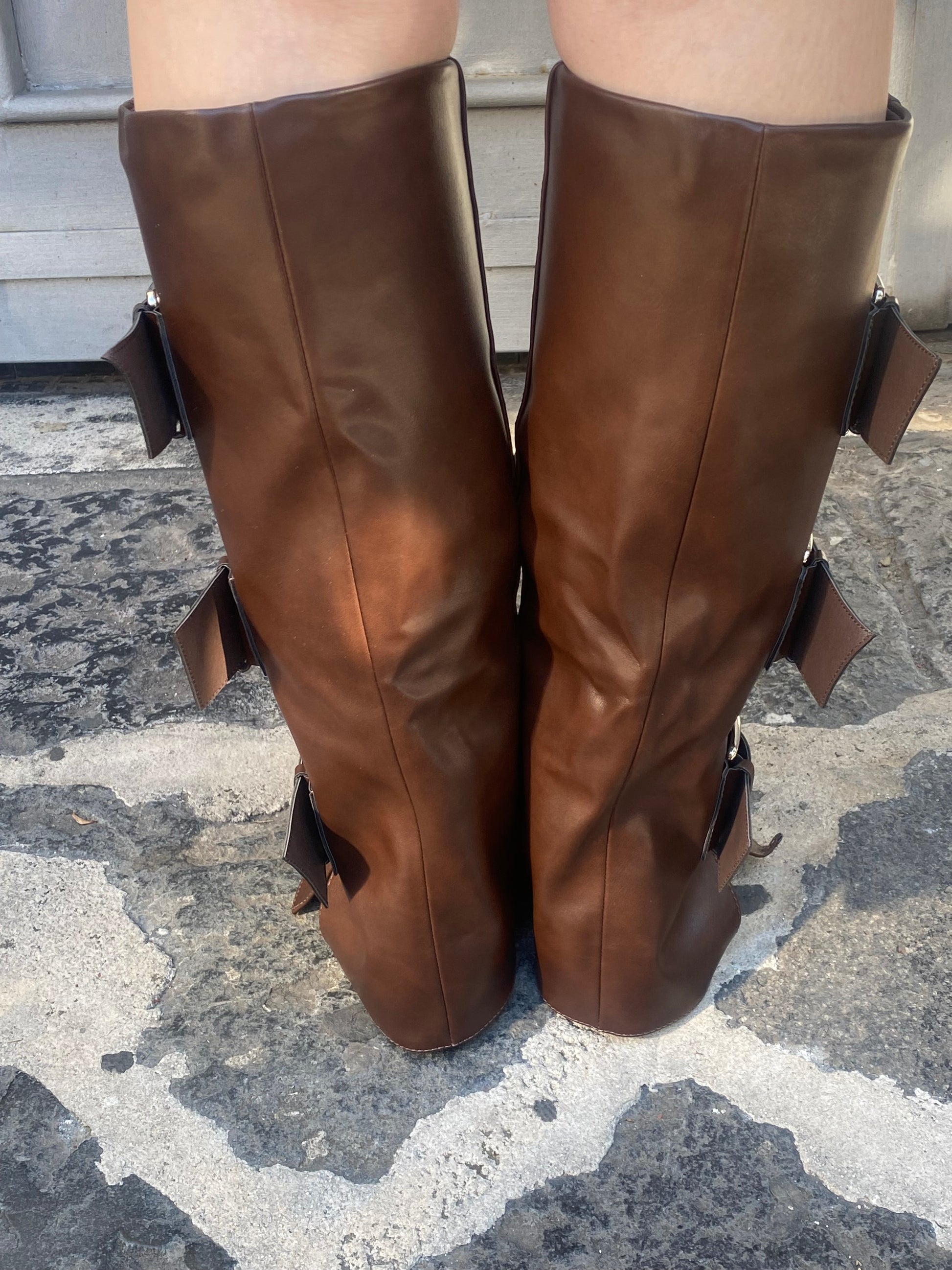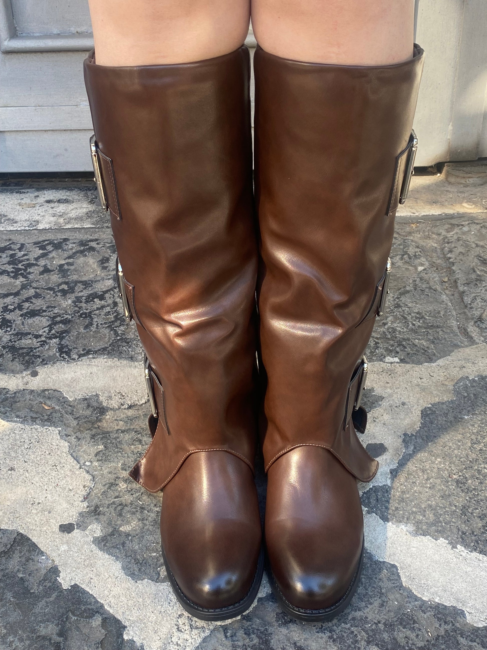 Stivale in pelle con tacco basso, decorazione laterale e mezza zip interna