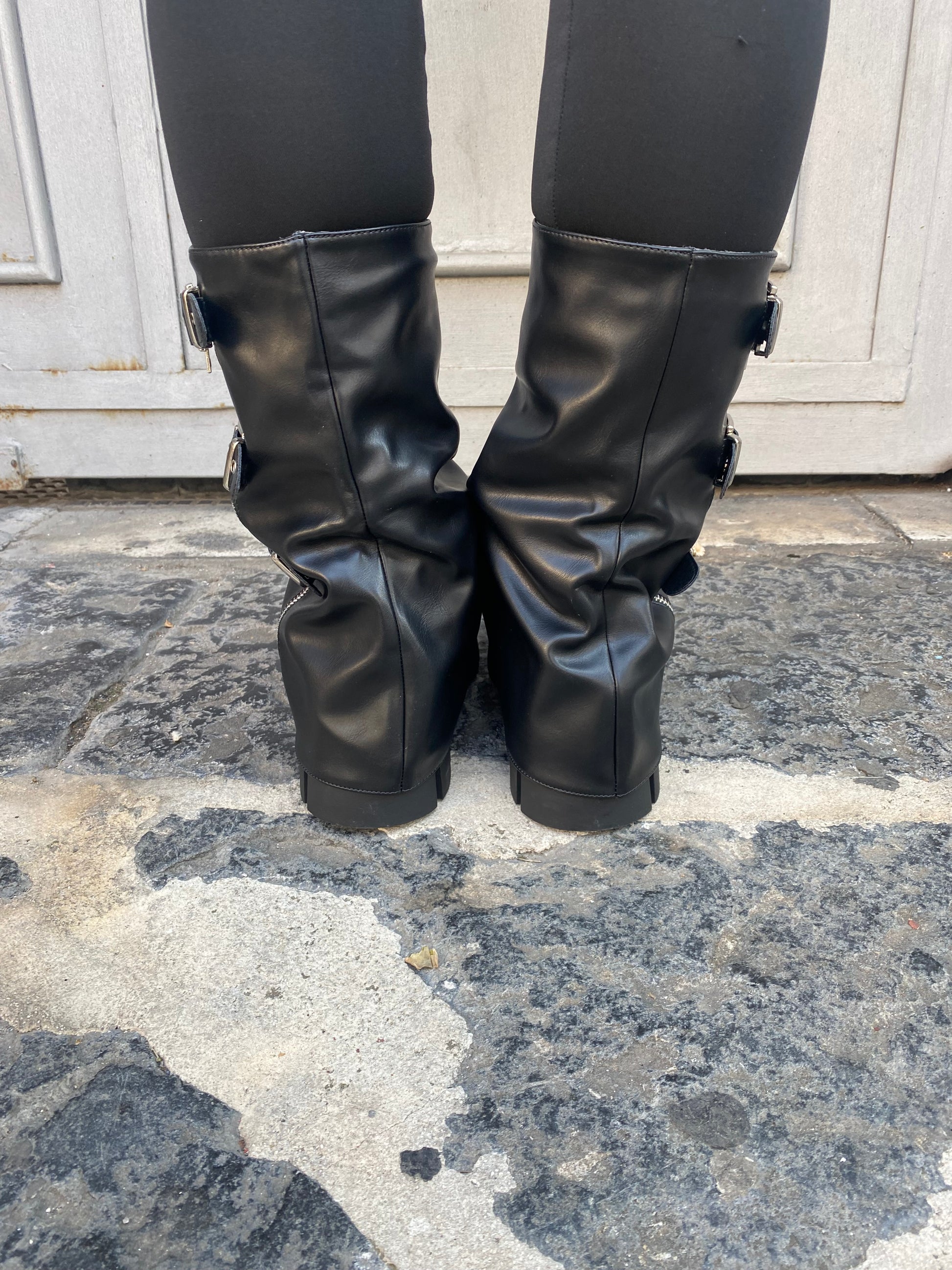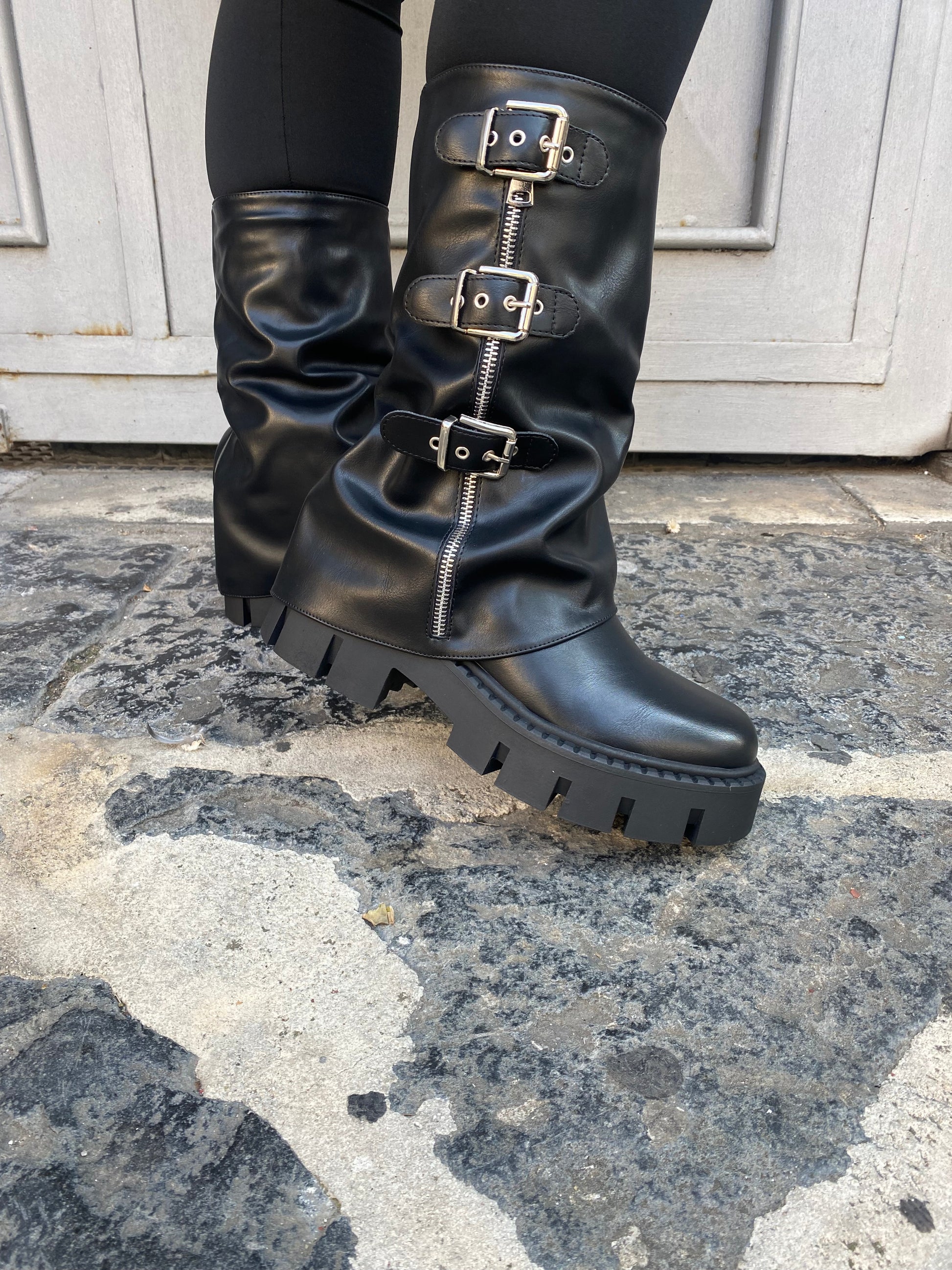 Stivale in pelle con suola a carro armato e decorazioni laterali