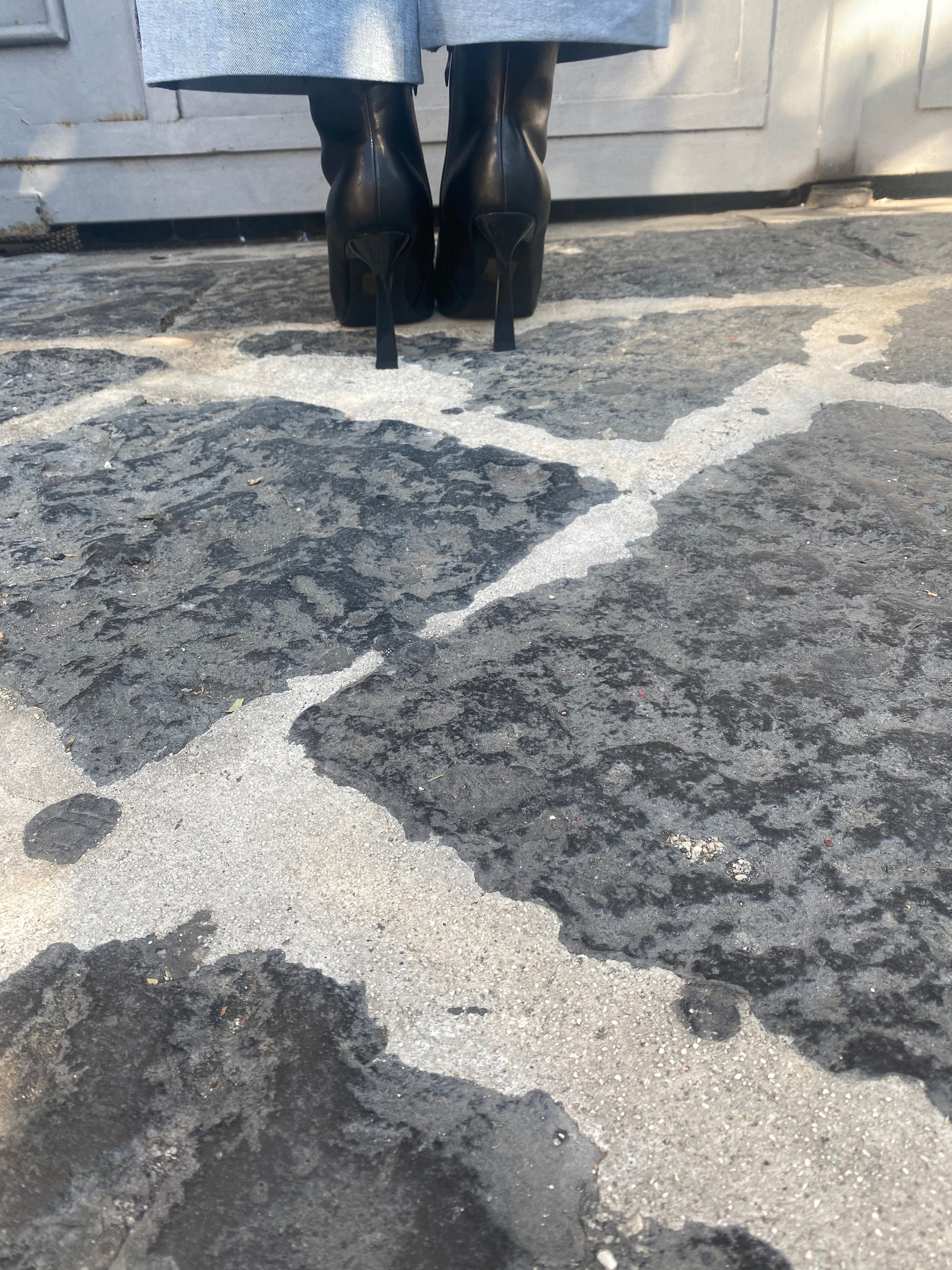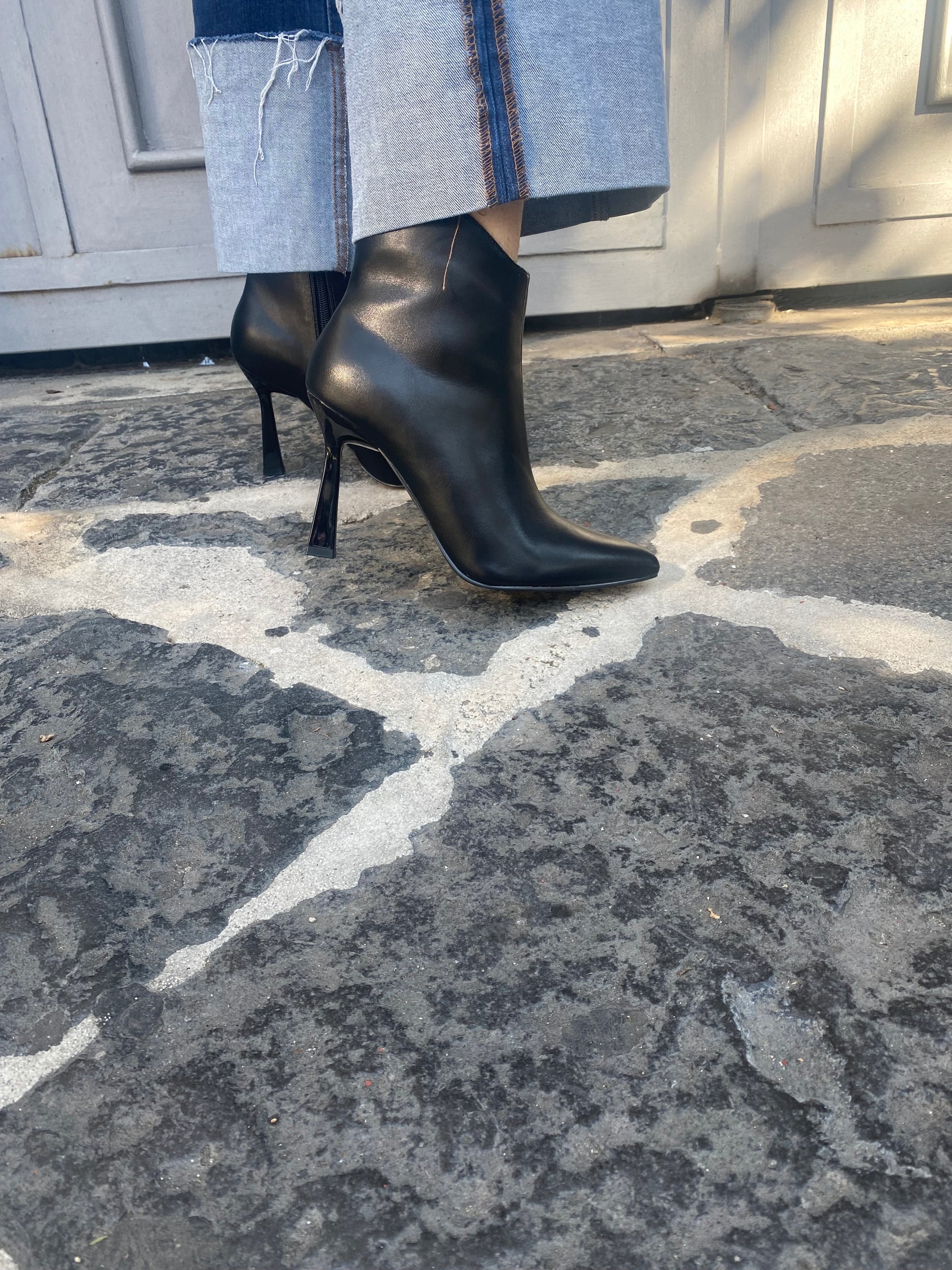 Tronchetto in pelle con zip laterale e tacco a spillo alto.